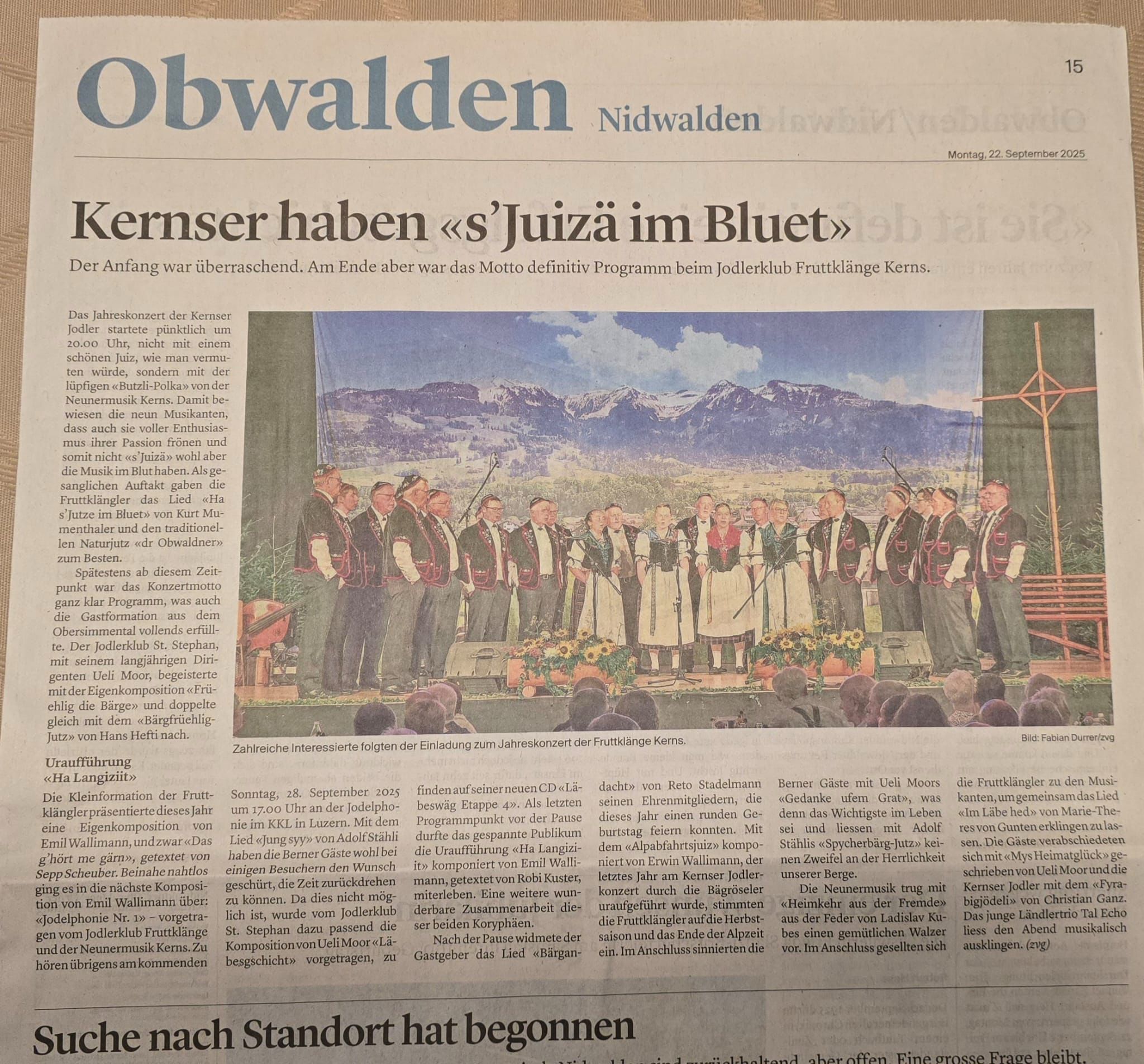 Hier zum Nachlesen: Beitrag in der Obwaldner Zeitung Luzerner Zeitung vom 22. September 2025